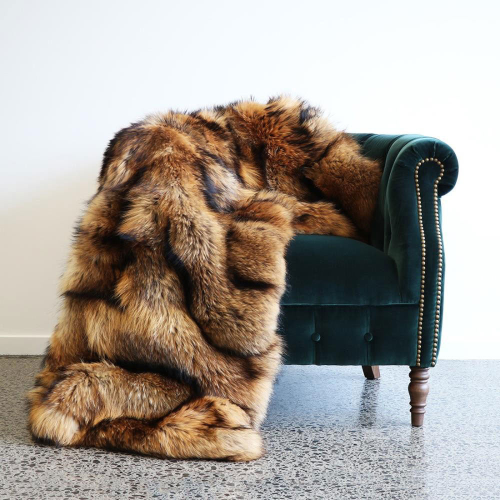 This lavish Canadian Racoon fur throw will be a centre piece for any cosy setting....
