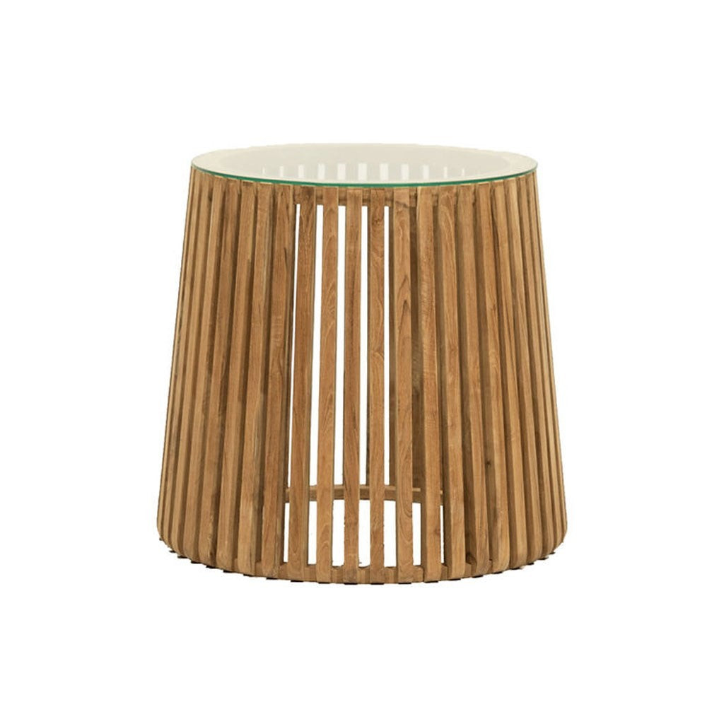 The Crusoe Round Slatted Side Table adds to any space with its slim and stylish...