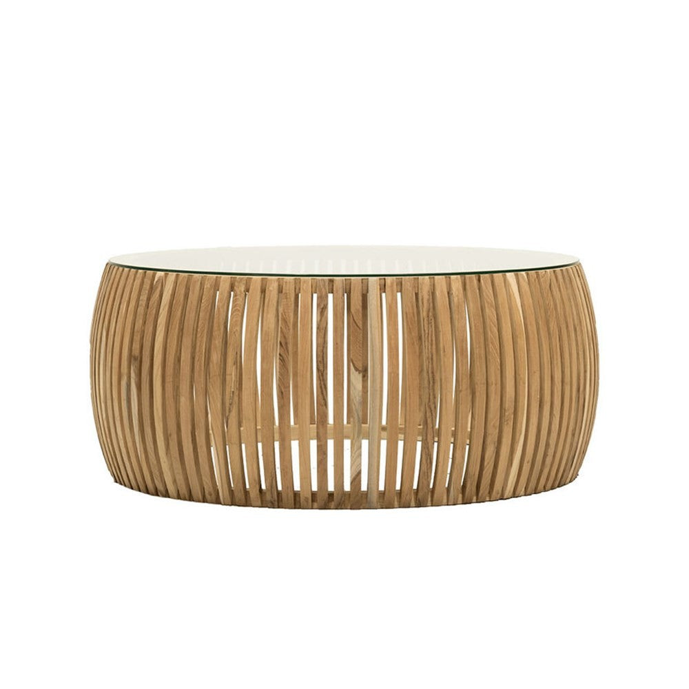 Crusoe Round Slatted Coffee Table - Natural
