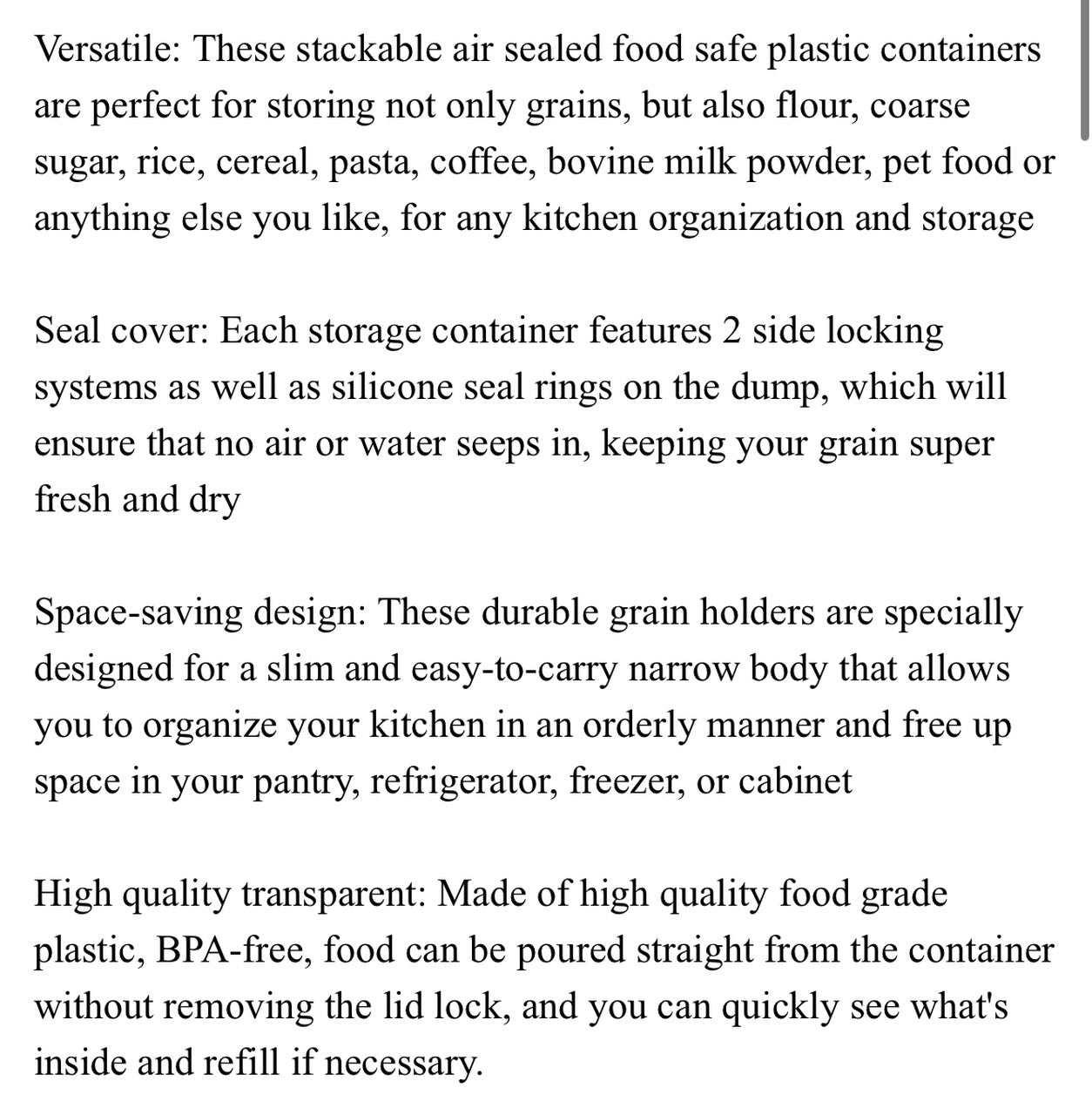 These food storage containers are durable BPA free. They can be stacked with the saftey edge built into the lid.