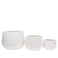 The Ahuriri White Cement planter comes as individual but works best as a set. Hand crafted in Reinforced fibre cement. Drainage holes are presnt and come with rubber bungs to make drainage optional. Each pot is individual and will be different to the next. They are seem joined in two peices so a join is visable. Measurements : 56cm (Dia). x 41cm ( H)