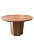 Expertly crafted from the finest American Black Walnut, this dining table is the perfect centerpiece for any dining room. With its octagonal base and 38mm thick solid timber tabletop, it comfortably seats four and adds a touch of elegance to any meal. Upgrade your dining experience with this stunning piece.