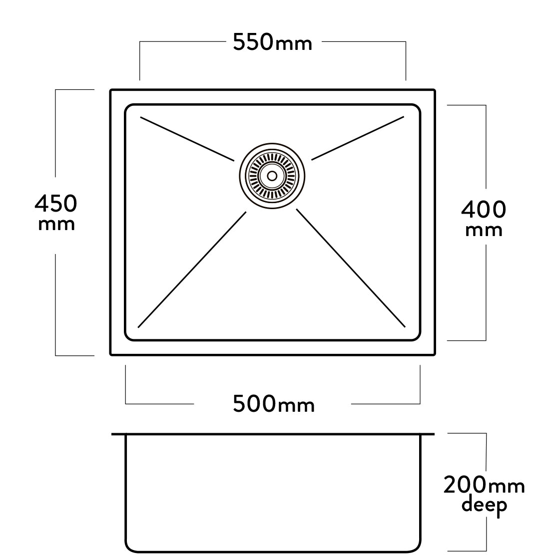 Dimensions of usable sink 400mm x 500mm x 200mm