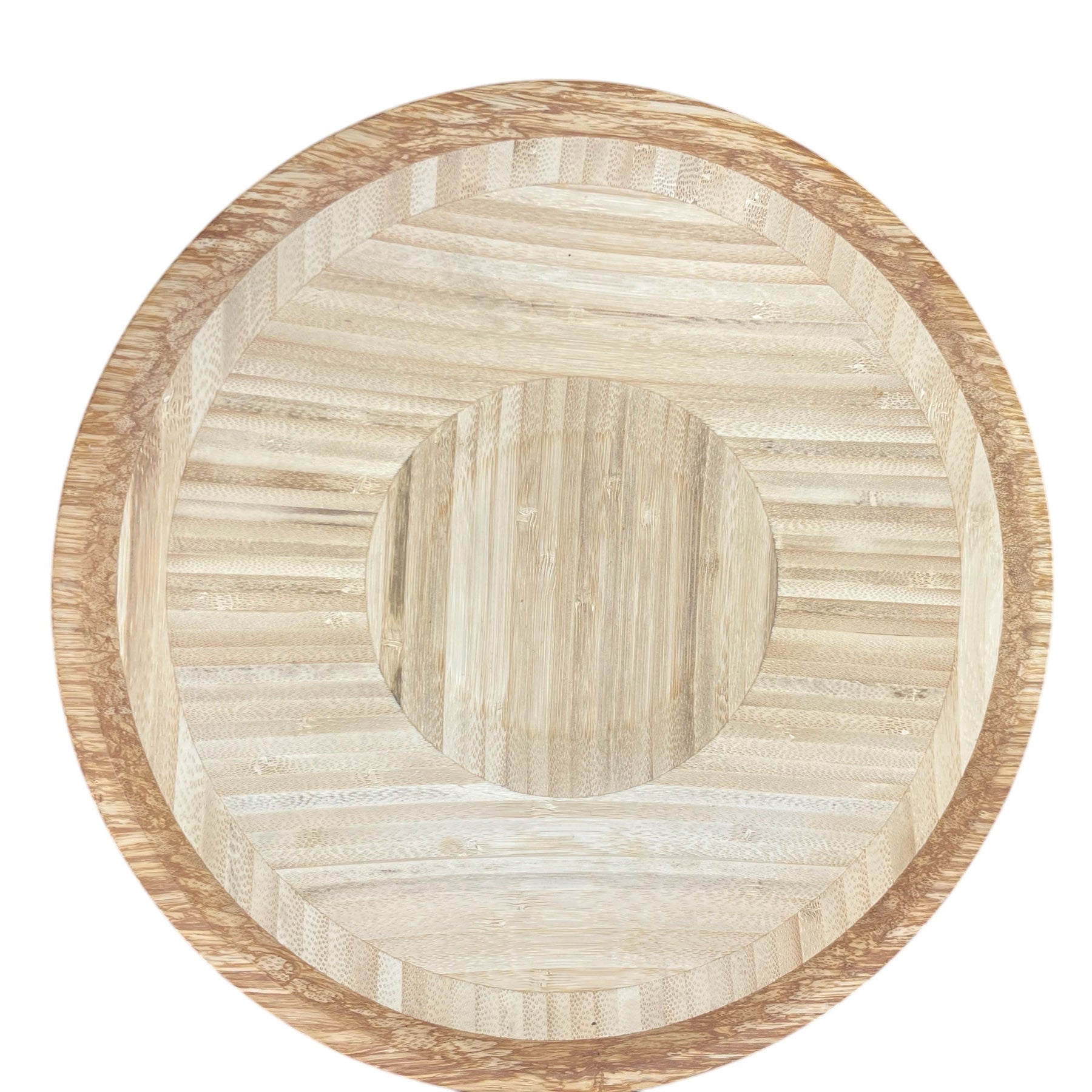 40mm thick bamboo round trays. Great for serving salads or as a decorative piece.