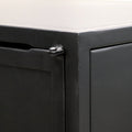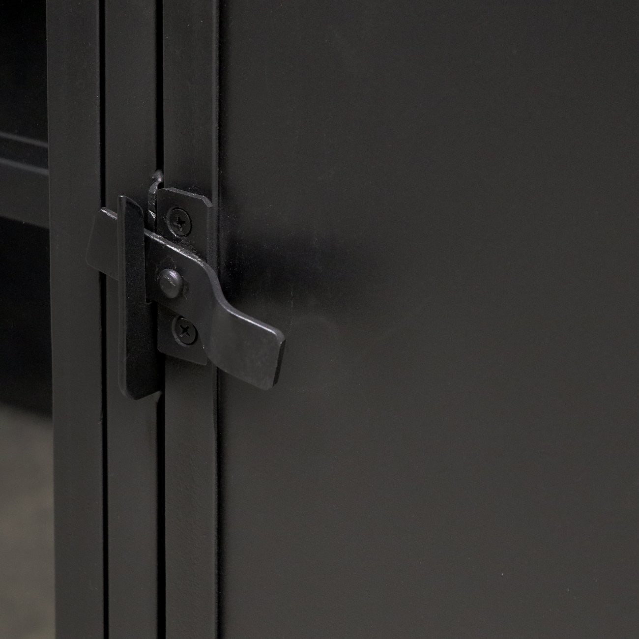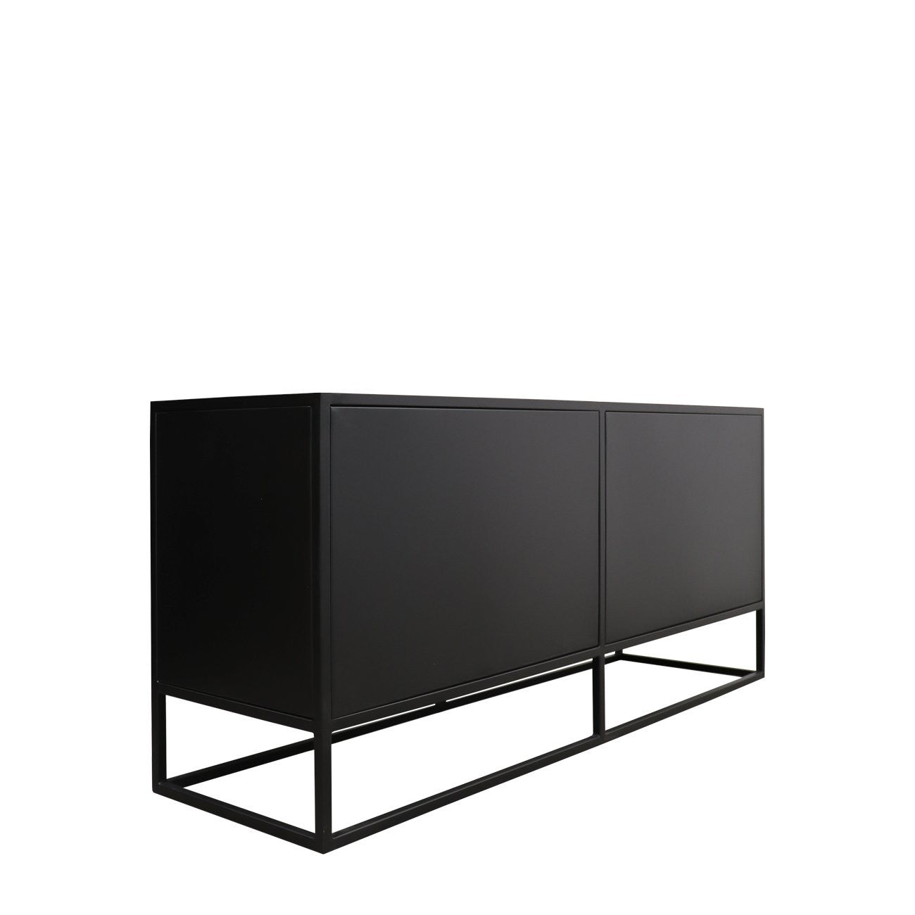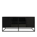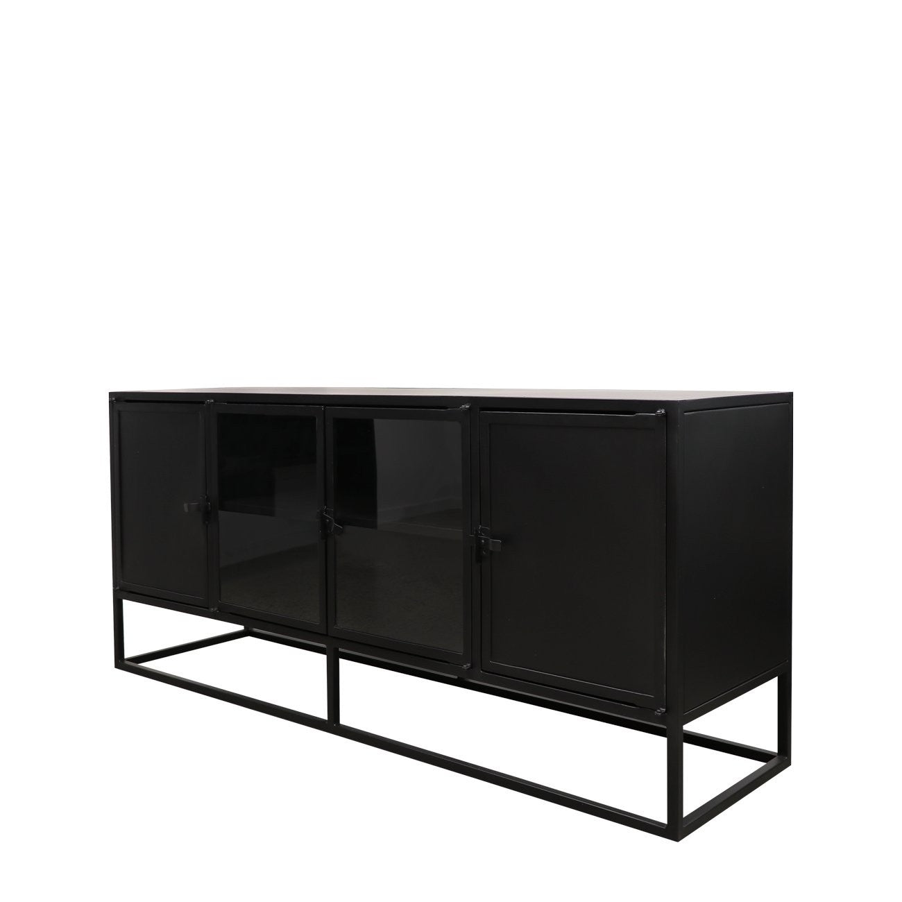 Elevate your storage solutions with the stylish and functional Carson Low Sideboard. Featuring a slim black metal frame, this piece offers accessible organization with 2 solid and 2 glass doors, secured by iron latches. Keep your space organized without compromising on style.
