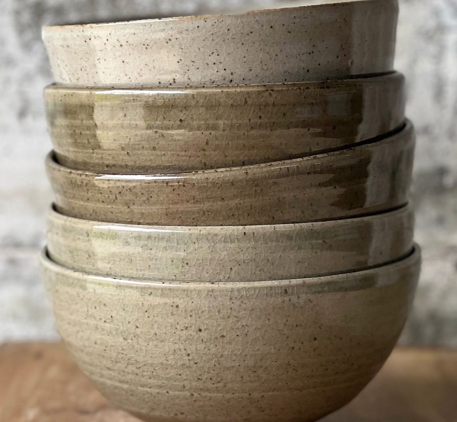Gas fired bowl in green. Approximately 140mm wide x 70mm high.