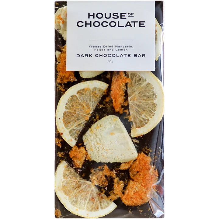 Chocolate - Freeze dried feijoa, Manderin & lemon Bar