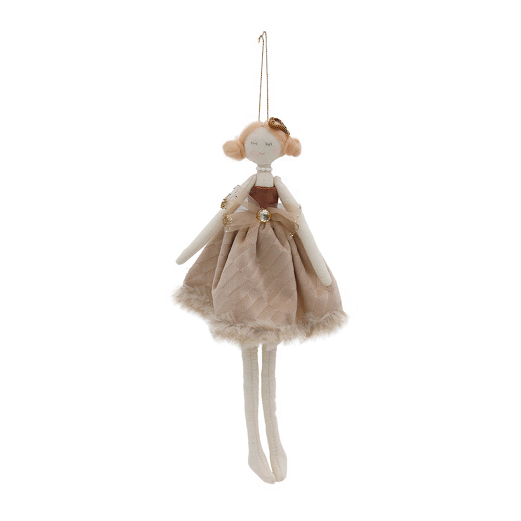 This Christmas, adorn your tree with the elegant and charming Millie Hanging Doll in Latte Velvet. This beautiful decoration will bring holiday spirit to any room with its soft, luxurious velvet fabric and unique hanging design. Add a touch of sophistication to your holiday decor with this must-have item.