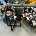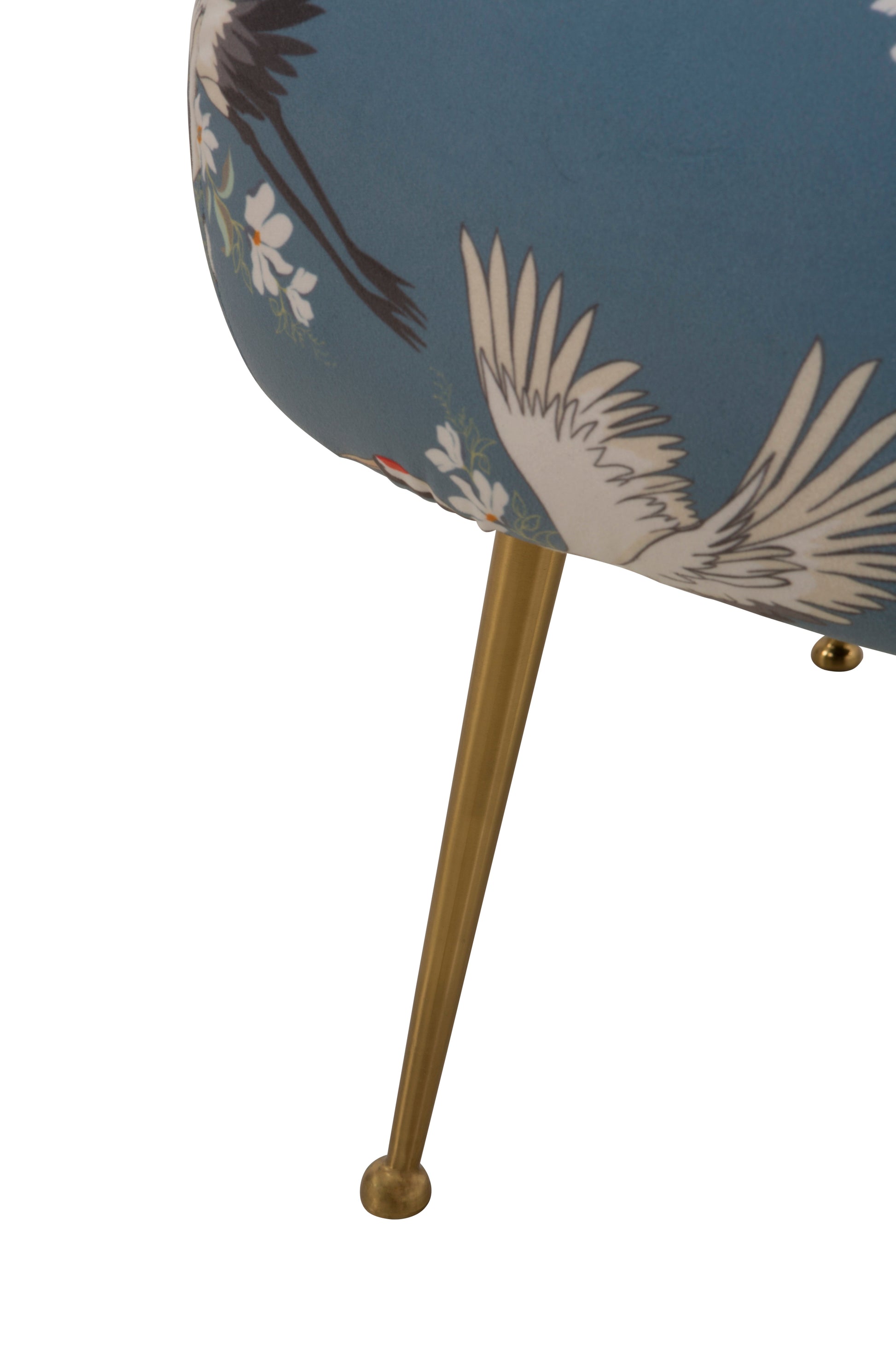 The Cloe chair only is a beautiful space to relax and read book or enjoy your coffee. Made in Europe with Brass coloured legs and plush velvet print.