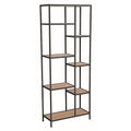 Materials Steel powder coated black, Melteca shelving oak wood grain finish.