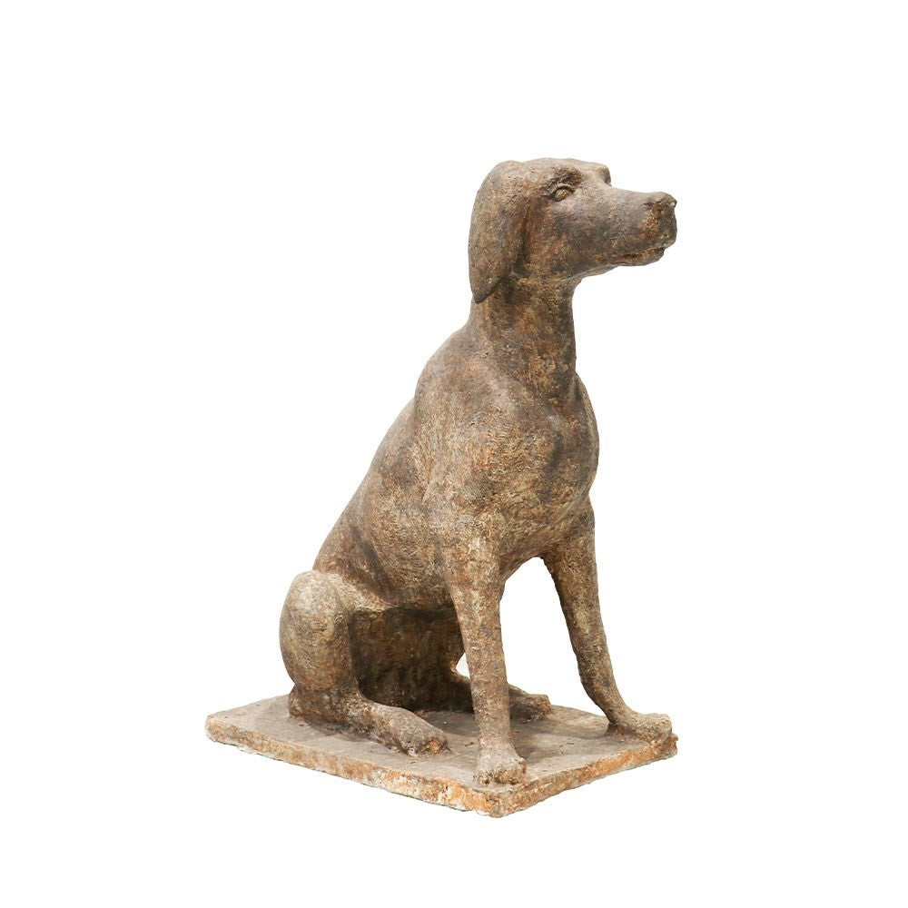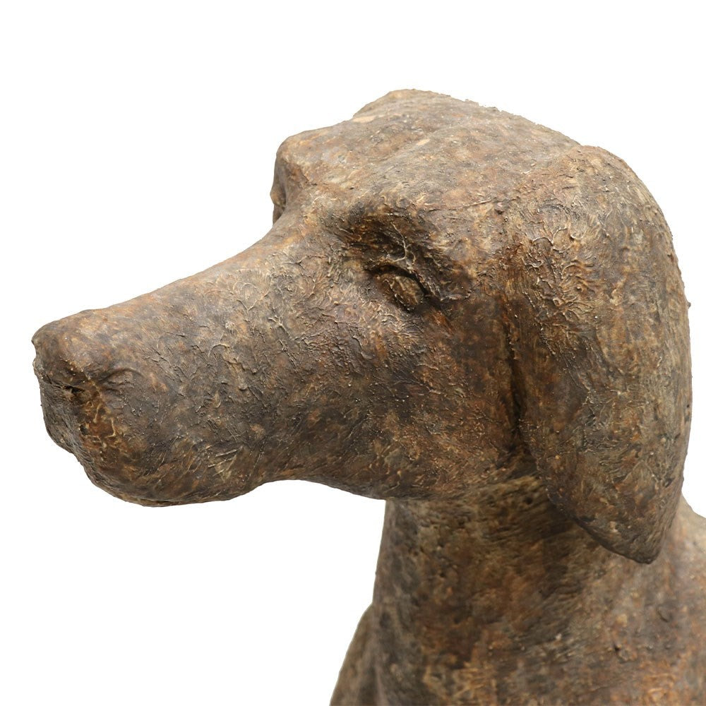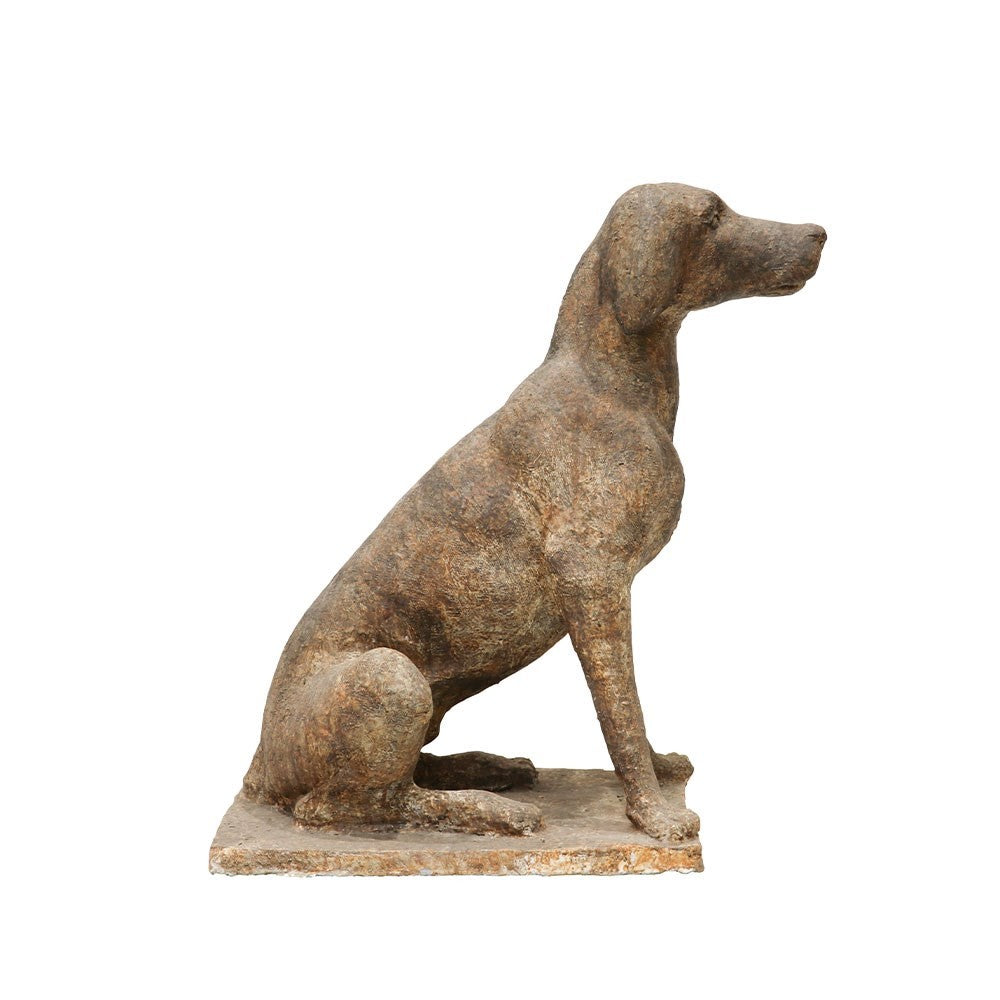 This Clay dog statue Small in an aged finish.