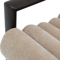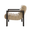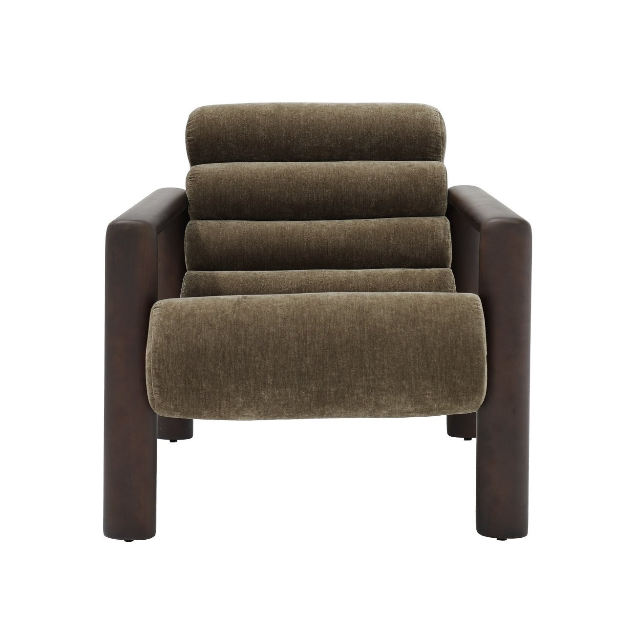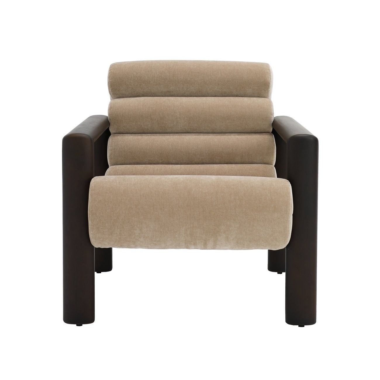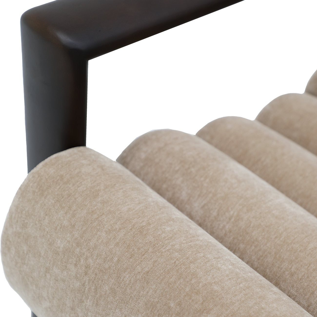 A sculptural statement with channeled velvet upholstery and cylindrical rubberwood arms, the Harris Accent Chair combines bold form with inviting comfort. Its deep, cushioned seat and architectural silhouette make it ideal as a standalone accent or paired within contemporary interiors.