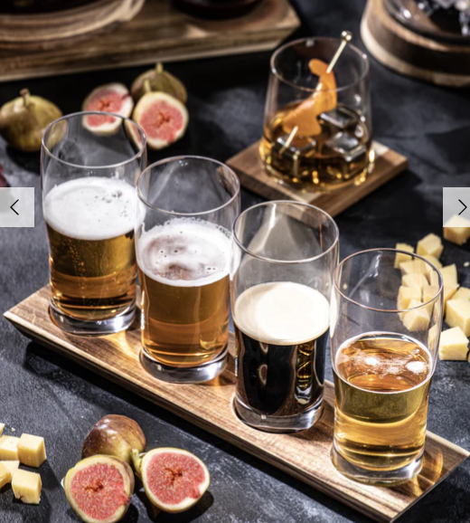 The Harvey 5-piece Beer Tasting Flight combines classic glassware with modern hand-crafted wood for a timeless yet modern aesthetic. Each piece is designed to be a statement in your home while also being practical for hosting and displaying your favorite drinks. Elevate your drinkware with this stunning set.