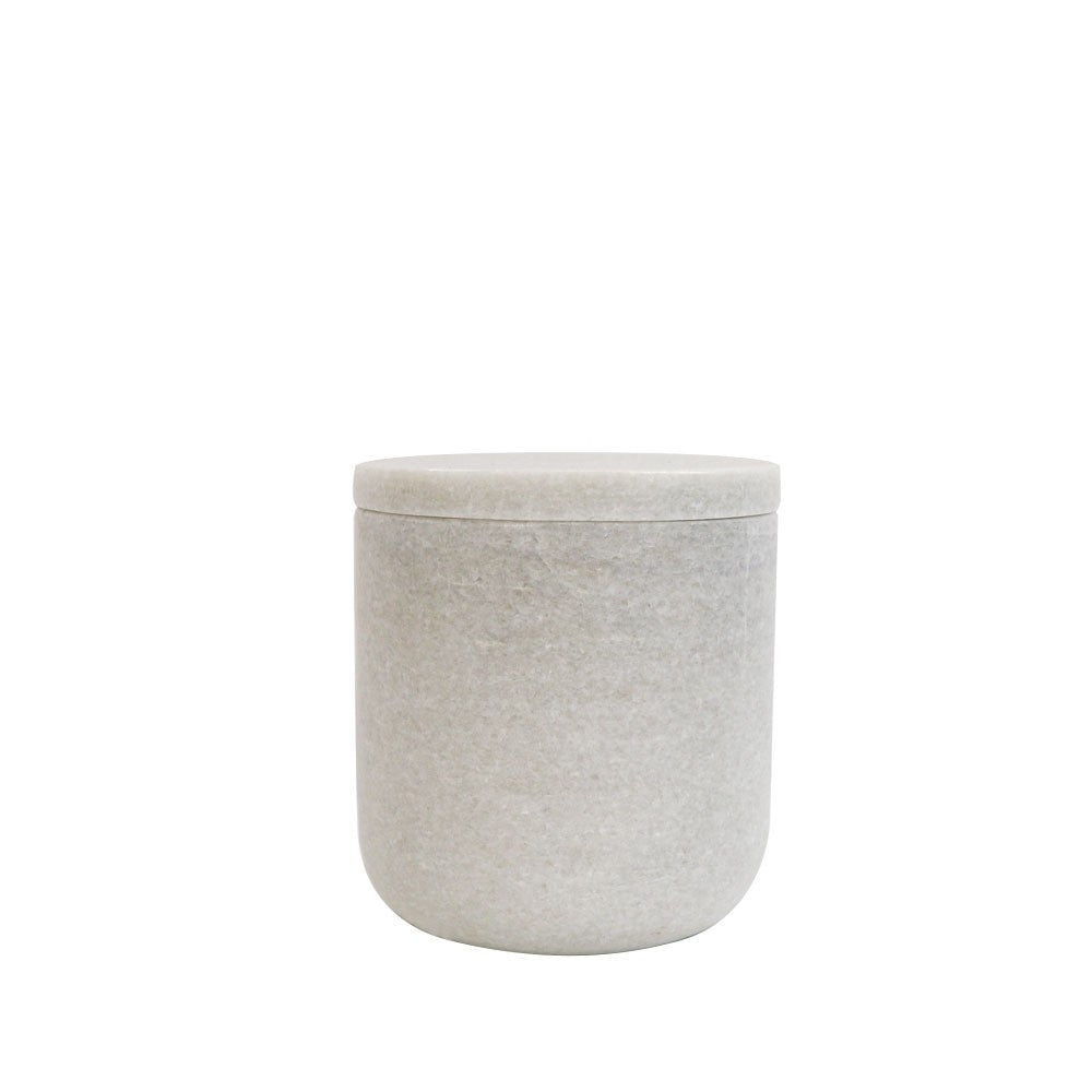 This Marble Cotton Jar is an elegant and timeless addition to any home. Hand-carved from a single piece of Makrana White Marble, sourced from India's oldest quarries, its simplistic design exudes sophistication. The natural imperfections in the marble only add to the character and charm of each unique piece.