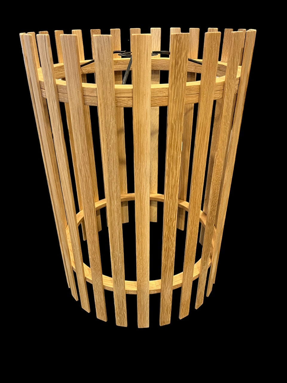 This pendant lamp shade is the perfect addition to any room. A timeless piece crafted from quality oak timber, it delivers a classic look with subtle sophistication. The shade features a beautiful visual grain and an elegant silhouette, making it a timeless statement piece.