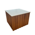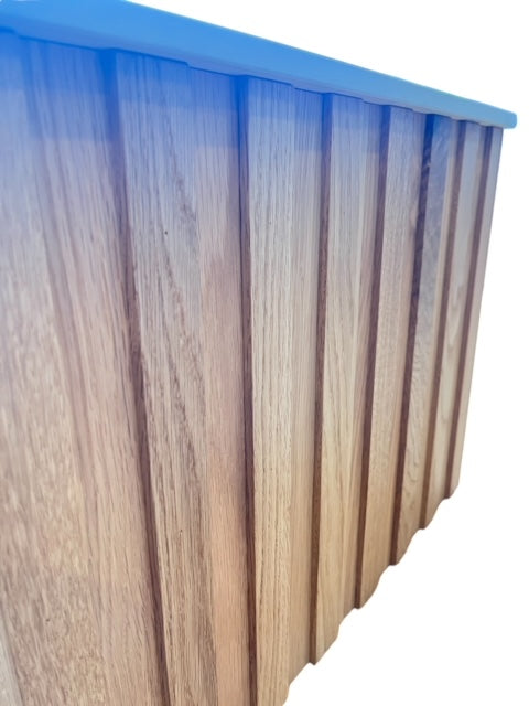 This side table is hand crafted in our local factory. Made from American white oak veneer and solid American white oak strips. The top is 12mm Deckton Rem.
