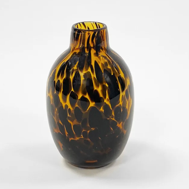 Indulge in the fierce elegance of our Tortoise tall bud vase. Adorned with a subtle leopard details, this tall bud vase will add a touch of sophistication to any space. Bring out your wild side and display your favorite florals in style.